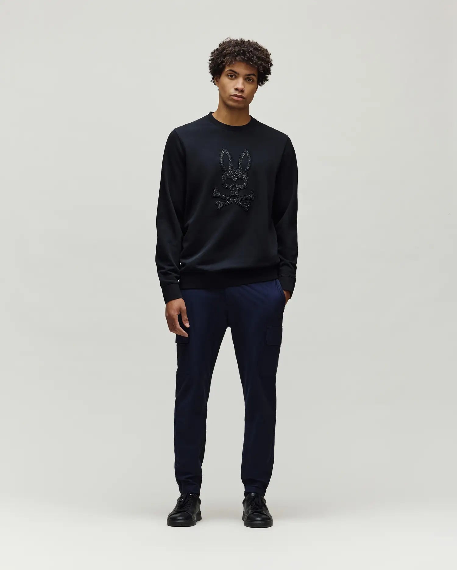 Rib knit crewneck. cuffs. and hem