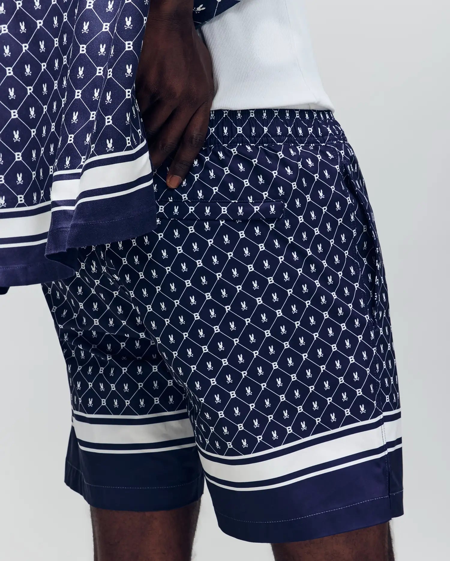 For a good time. just add water. And a matching set. We worried about the details ??that all over Bunny pattern and bold hem. the quick dry body and no-chafe netting ??so you can worry about the important stuff. like your tan. Waterproof bag included in back pocket. Water not included.